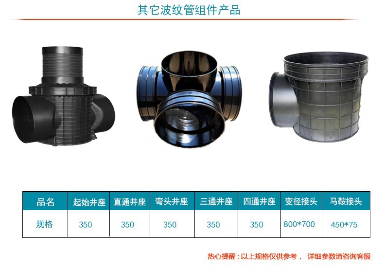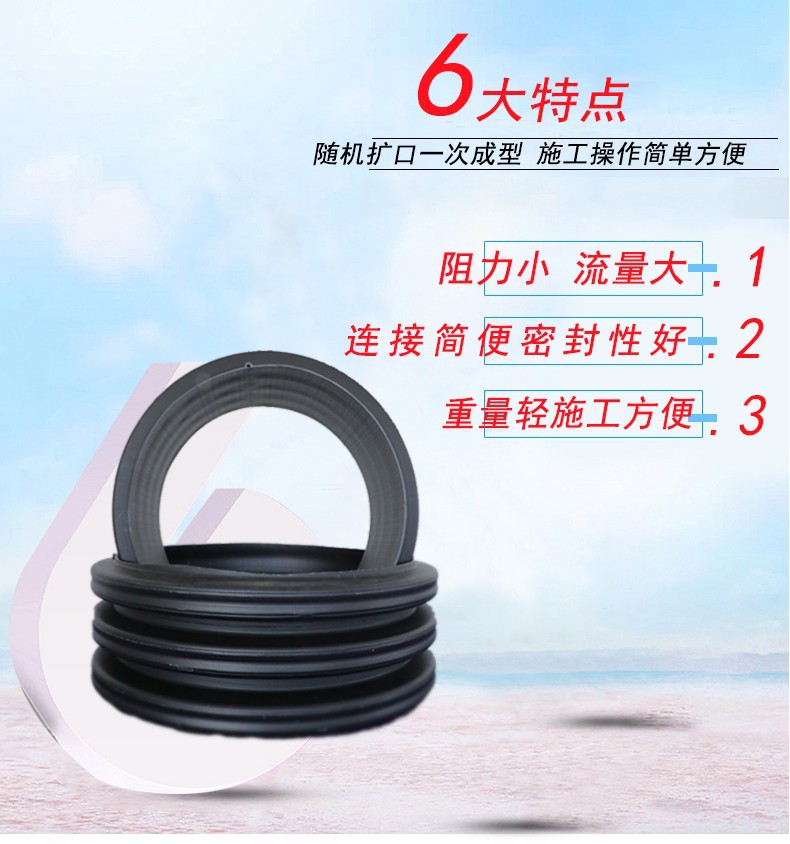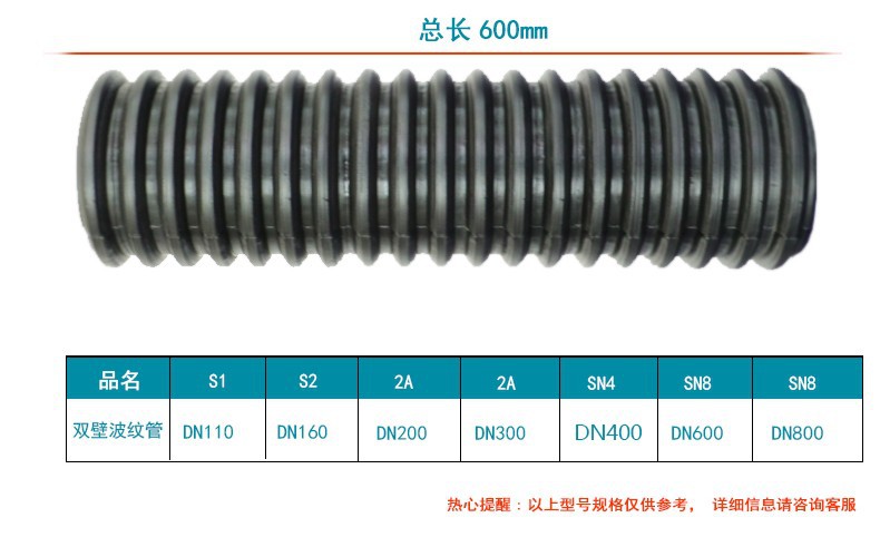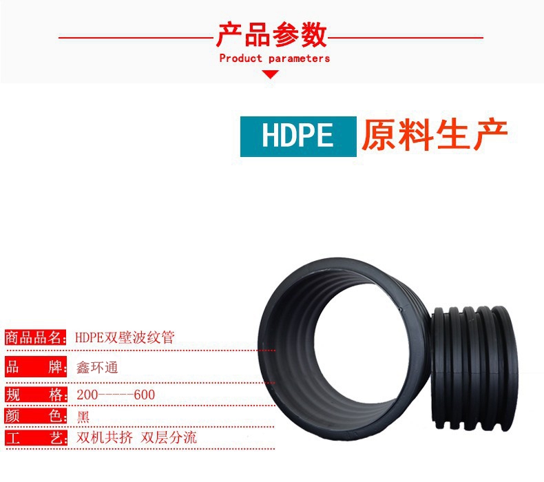 山东环通复合材料有限公司是从事HDPE双壁波纹管管道的生产厂家,本公司生产的HDPE双壁波纹管分为三种SN4、SN6、SN8,规格型号:110、20